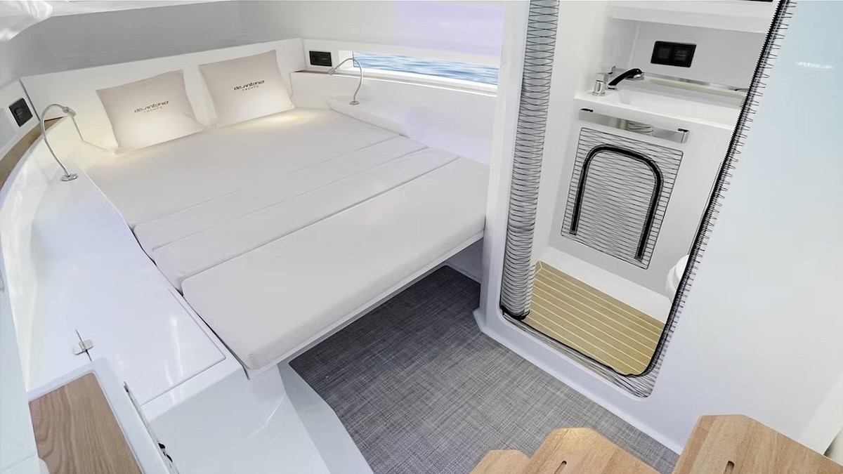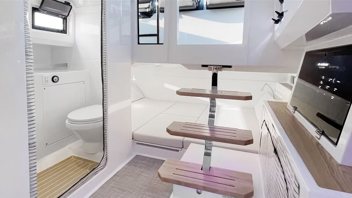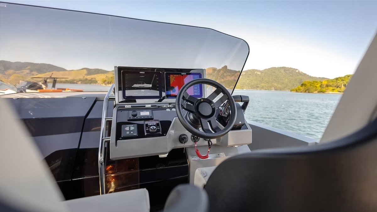 Przestronny i funkcjonalny układ typu walk-around zapewnia swobodę poruszania się, a na pokładzie znajduje się również kambuz. Wnętrze jednostki oferuje dwie kabiny oraz oddzielną łazienkę. Całość dopełniają znakomite osiągi — prędkość maksymalna do 50 węzłów oraz komfortowa prędkość przelotowa około 30 węzłów, uzyskane dzięki sportowej jednostce napędowej i wysokiej efektywności konstrukcji.