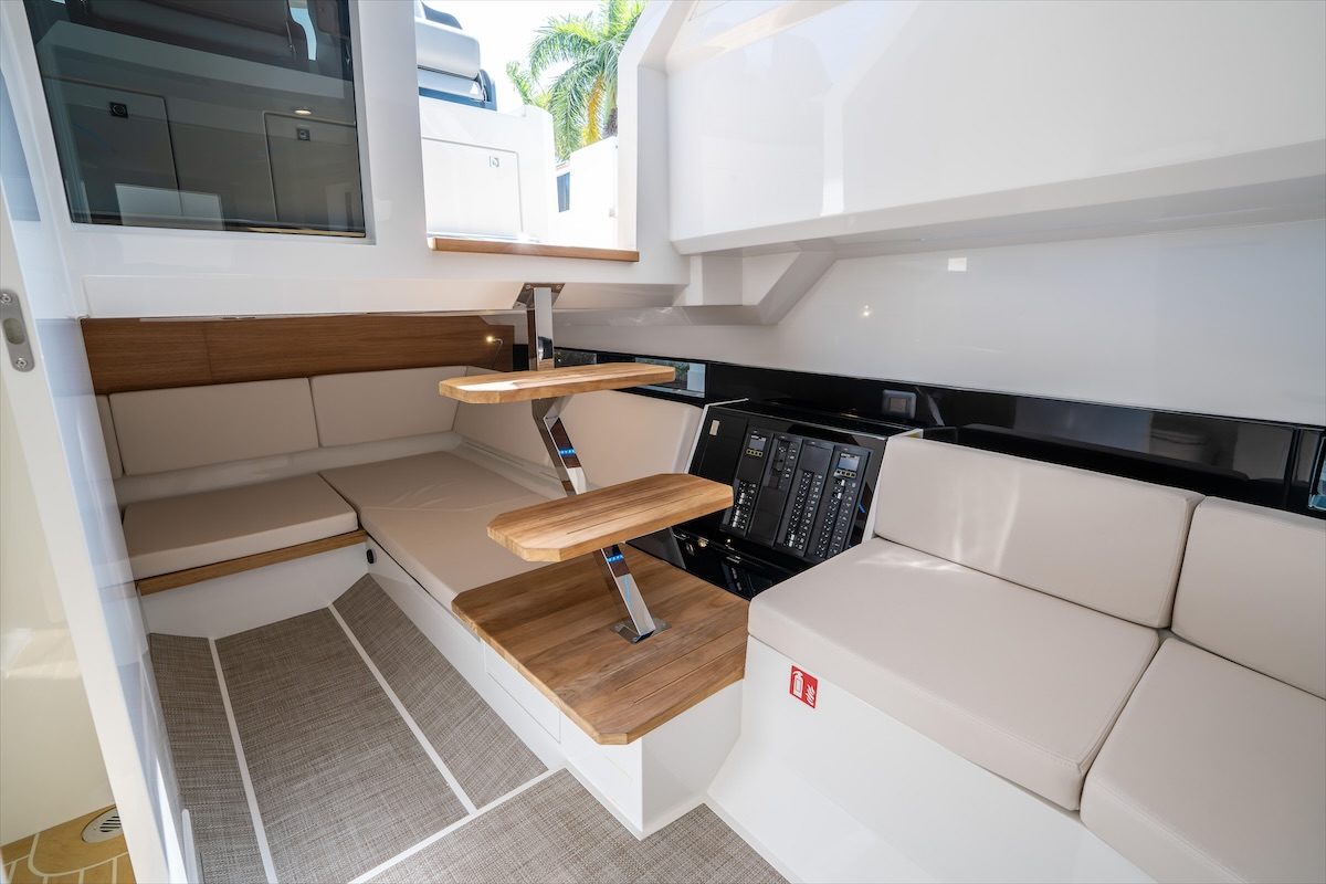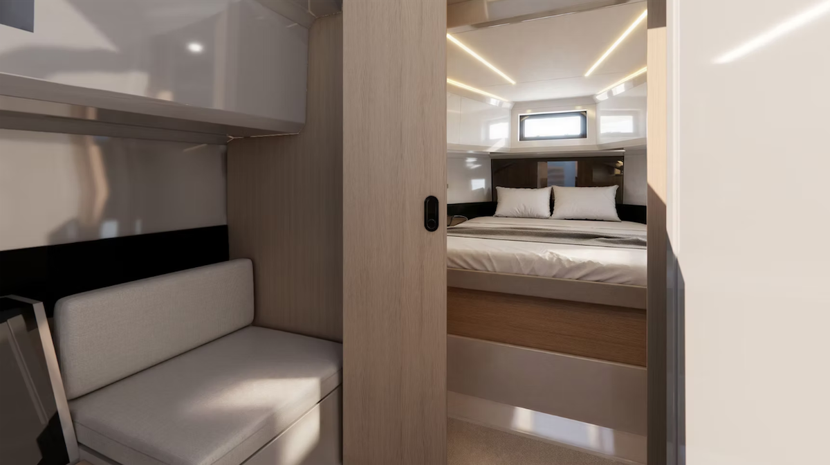 To propozycja dla armatorów poszukujących jachtu premium, oferującego ochronę przed warunkami atmosferycznymi, a jednocześnie zachowującego sportowy styl i otwarty charakter przestrzeni zewnętrznych.