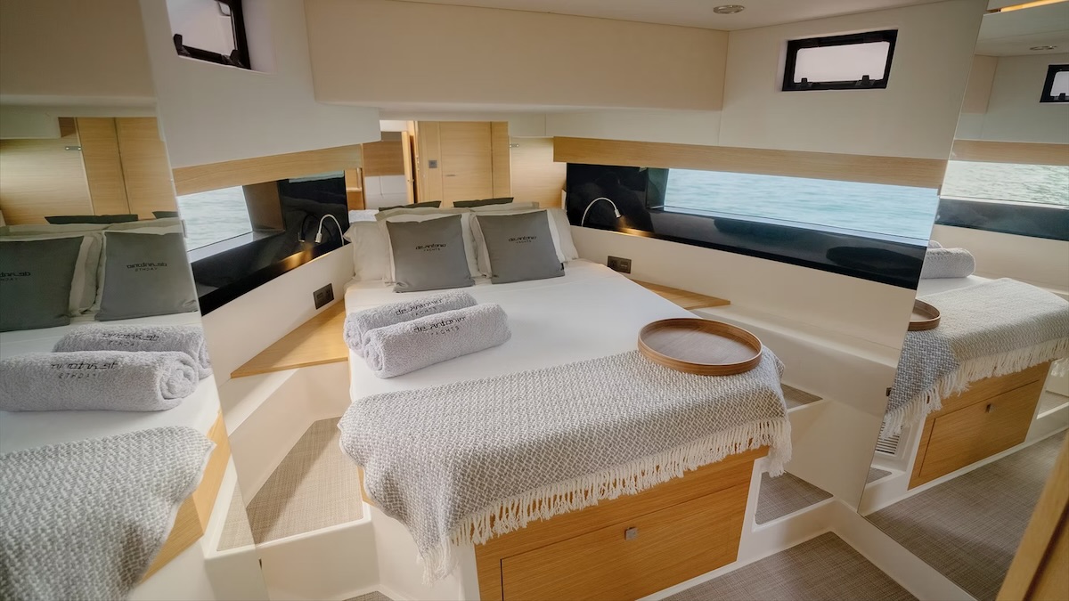 To coś absolutnie wyjątkowego. 50-stopowy jacht, który dzięki mocnym jednostkom napędowym oraz zaawansowanej konstrukcji kadłuba potrafi „lecieć” z prędkością 50 węzłów, a jednocześnie oferuje przestrzenie zewnętrzne i wnętrza, jakich nie spodziewałbyś się w tej klasie.