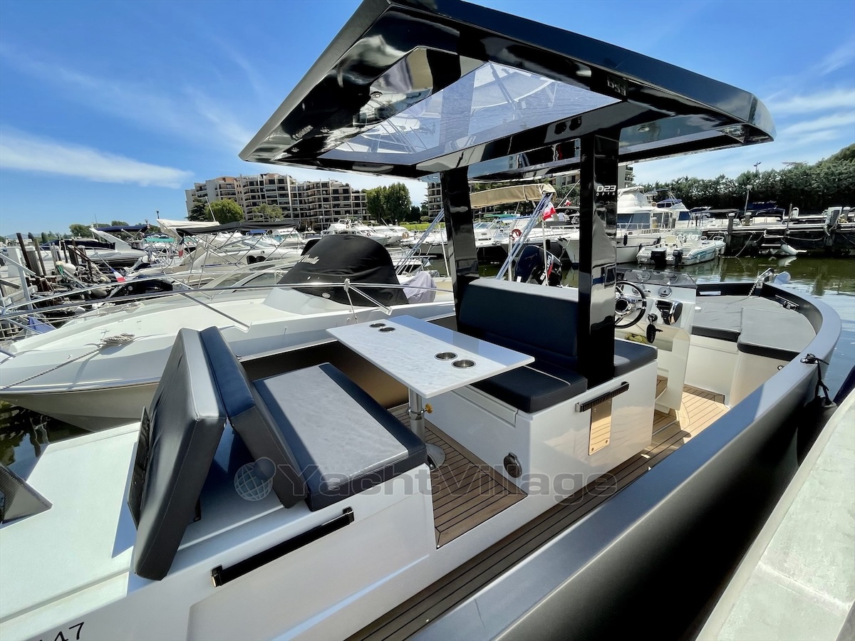 De Antonio D23 to kompaktowy jacht motorowy typu day boat, zaprojektowany z myślą o maksymalnej przyjemności z pływania, nowoczesnym designie i funkcjonalności w niewielkim, ale bardzo dopracowanym formacie.