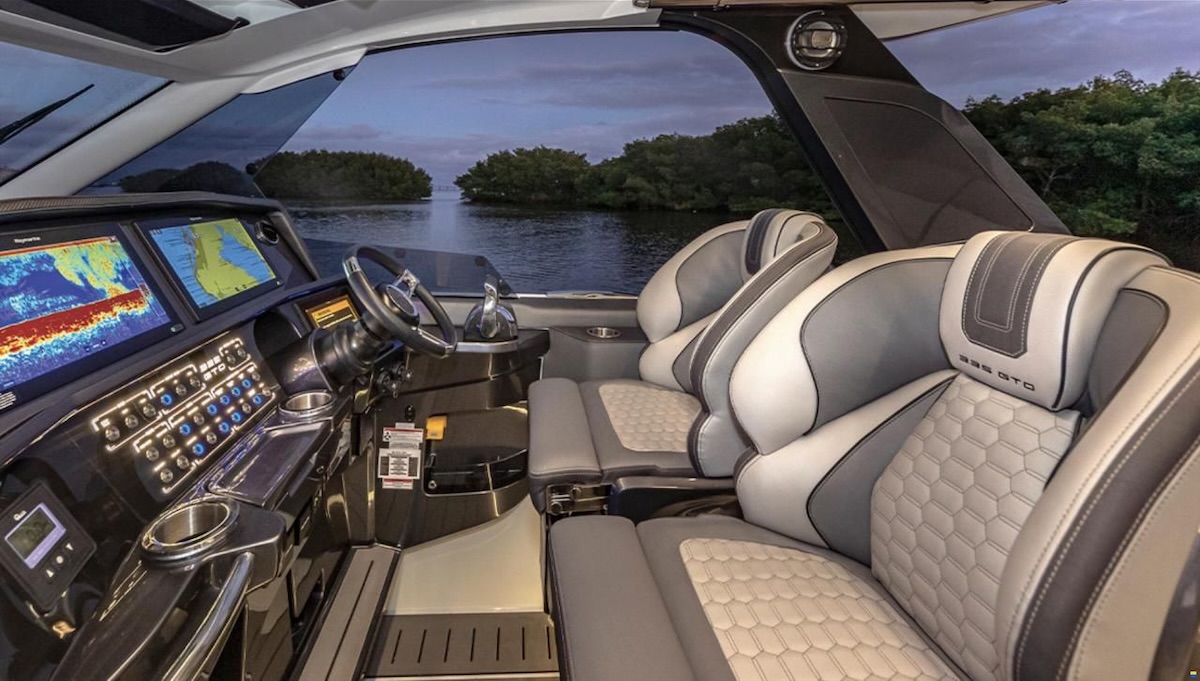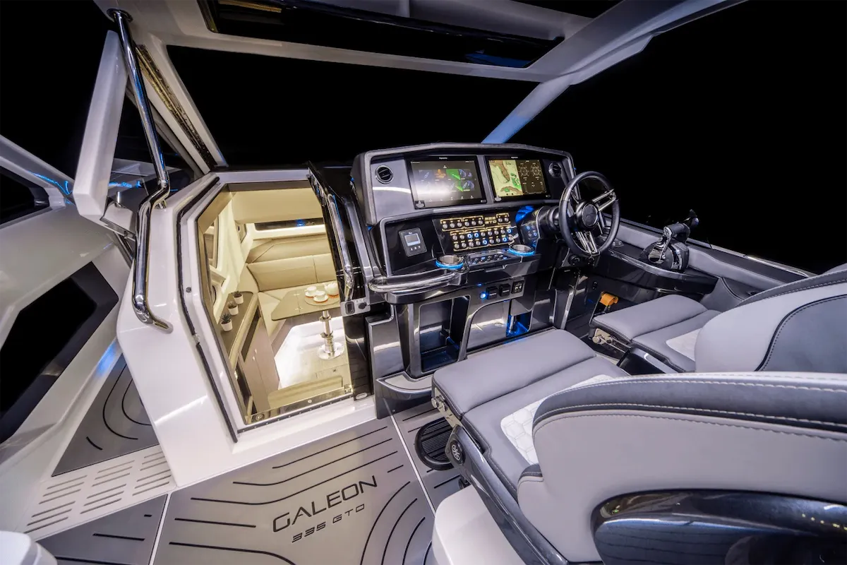 Model 335 GTO łączy sportowe osiągi z komfortem klasy premium, oferując ergonomiczne stanowisko sterowe, duże powierzchnie do opalania oraz dopracowane wykończenie charakterystyczne dla marki Galeon.