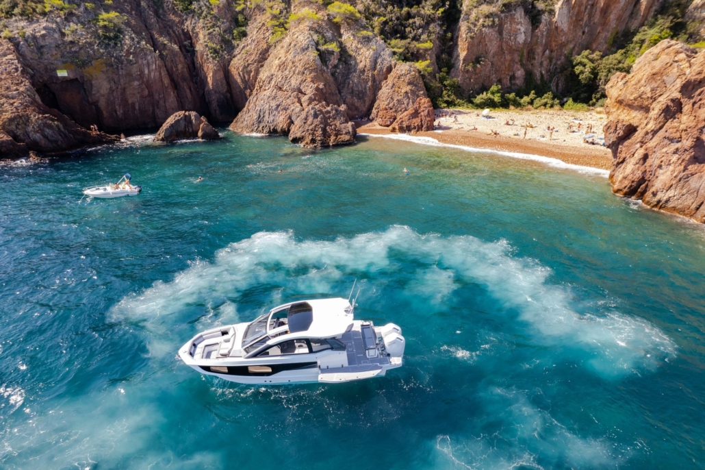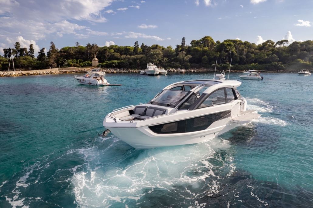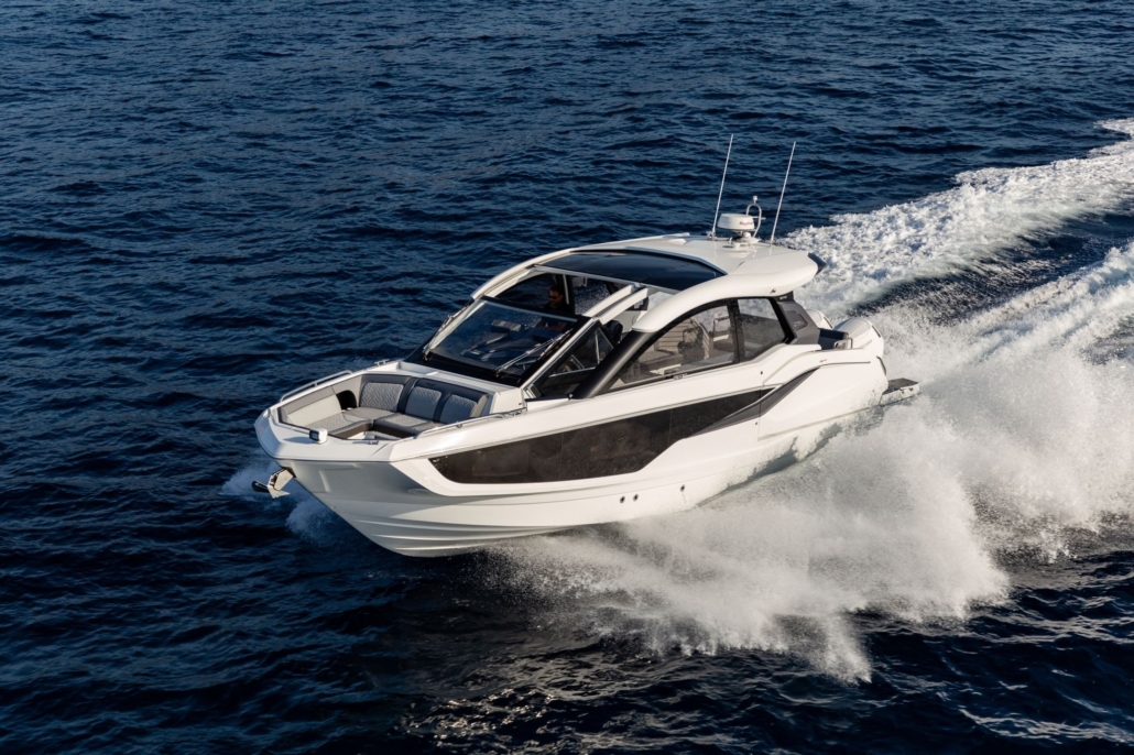 Ten bogato wyposażony jacht dzienny czerpie inspirację z czwartej generacji jachtów Galeon, dodając do tego charakterystyczny styl GTO. Niska sylwetka, doskonałe proporcje i sportowe akcenty sprawiają, że wyróżnia się w każdej marinie.