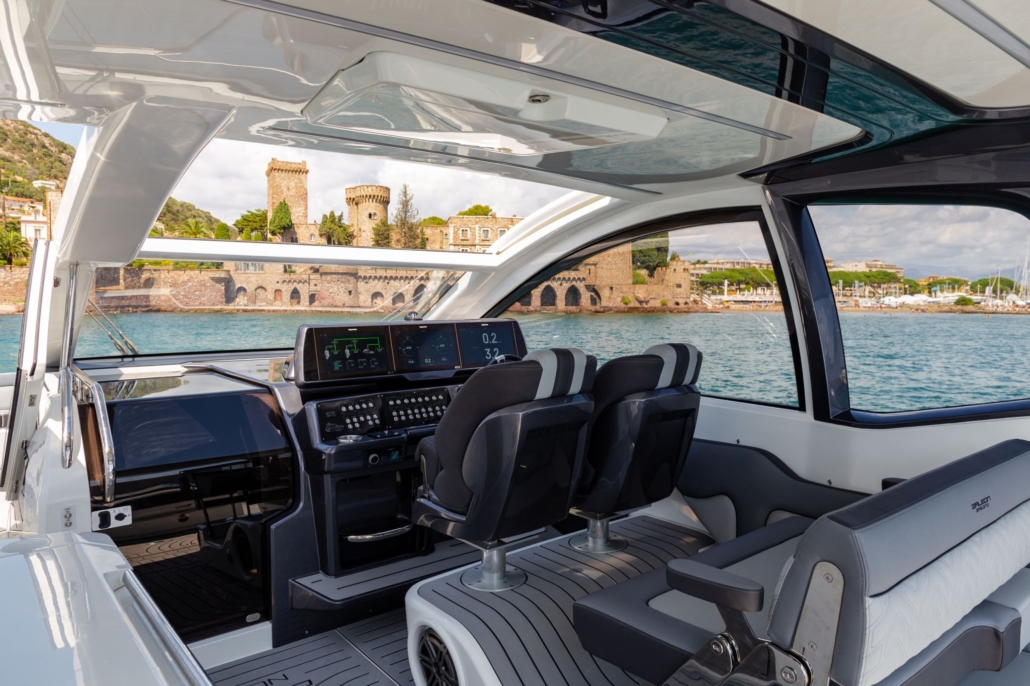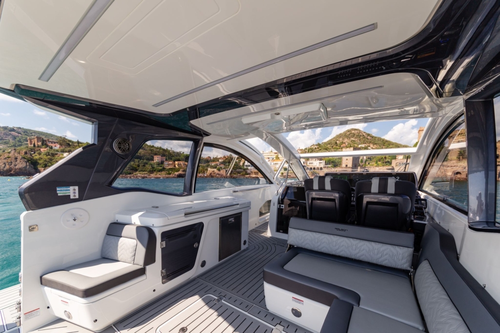 Dla wygody kierowcy 375 GTO umożliwia otwarcie nie tylko szyberdachu, ale także okien na lewej i prawej burcie, zapewniając lepszą wentylację i poczucie prędkości. Dwukolorowa konsola kierownicy może być wyposażona w potrójne ekrany do monitorowania wydajności, nawigacji i odnajdywania ryb jednocześnie, podczas gdy zarówno fotele, jak i kierownica są regulowane elektrycznie.