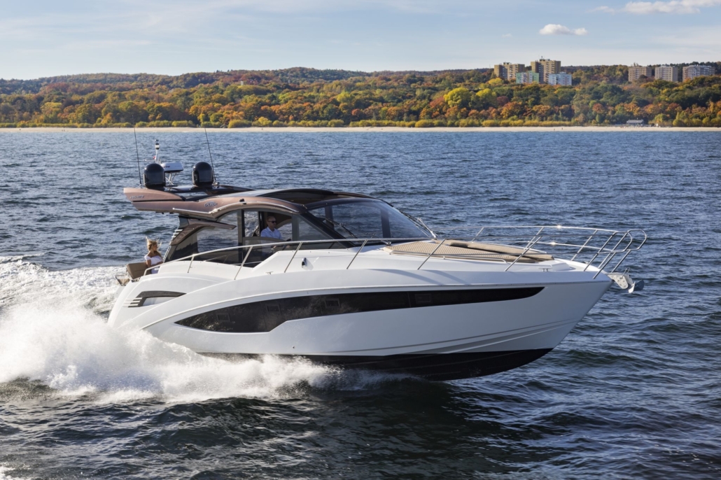 Galeon 425 HTS został zaprojektowany jako dynamiczny jacht typu express cruiser, oferujący funkcjonalne wnętrze i doskonałe wykorzystanie przestrzeni na pokładzie. Posiada rufową kabinę armatorską, dwie łazienki, elektrycznie otwierany szyberdach oraz okna boczne. Szerokie półpokłady zapewniają bezpieczny dostęp na dziób, a hydraulicznie otwierany garaż rufowy pomieści ponton. Wnętrze oferuje salon oraz dwie kabiny i łazienki, z kabina armatora zajmującą całą szerokość jachtu, co zapewnia przestronność. Dodatkowo, ogromny szyberdach i elektryczne okna boczne mogą być otwierane, poprawiając przepływ powietrza na pokładzie. Dostępne są różne wersje wykończenia wnętrza i szeroka gama silników, zapewniających doskonałe osiągi.