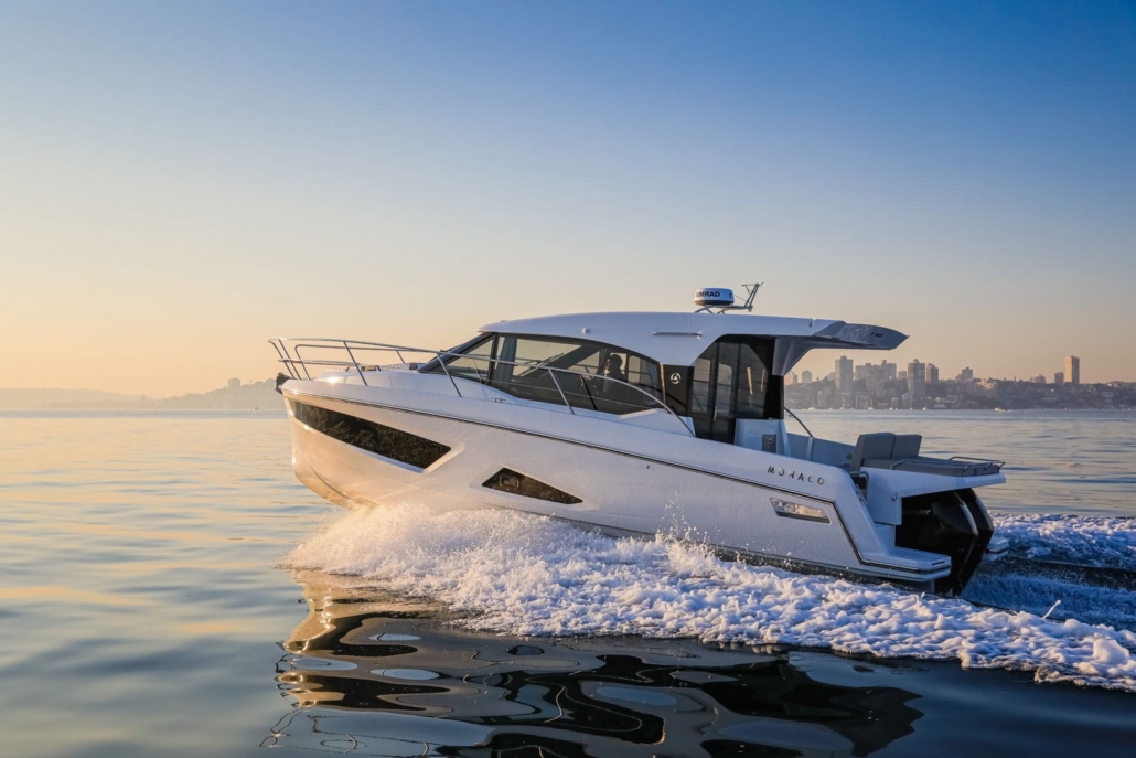 Parker Monaco 110 to innowacyjna łódź motorowa z nowej serii Parkera we współpracy z Tony Castro Design. Łączy przestronny układ kabinowy z wydajnymi silnikami zaburtowymi, co redukuje koszty konserwacji. Unikalna leżanka słoneczna zatłumia hałas silników, a przesuwany fotel zwiększa przestrzeń kokpitu. Wnętrze oferuje 2 kabiny, łazienkę z prysznicem i wygodną strefę wypoczynkową. Dostępne są różne silniki oraz opcje wyposażenia. To nowoczesny, funkcjonalny projekt w atrakcyjnej cenie.